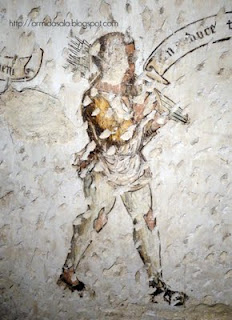 Ciclo di grottesche che fanno da cornice agli affreschi, e che ritraggono personaggi fantastici intenti a lavorare le armi.
